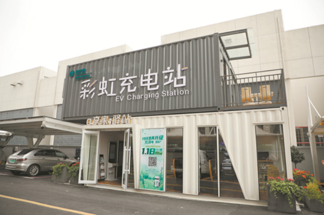 浙江杭州彩虹“多站融合”微综合体充电站。