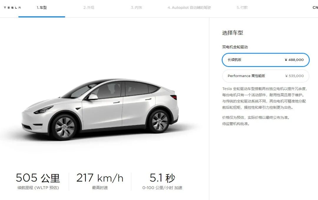 目前,特斯拉中国官网显示Model Y车型已经开始接受预定,售价分别为48.8/53.5万元,预计最快2021年开始生产。