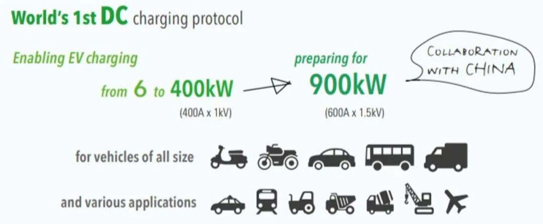CHAdeMO的介绍中提及,与中国合作的下一代充电接口最高能达到900kW,并能用于各种交通工具