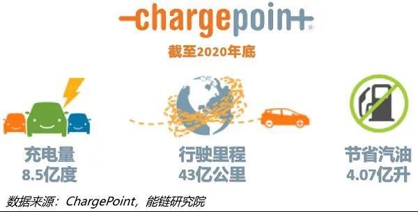 截至2020年底,ChargePoint累计充电量8.56亿度,累计完成8743万次充电服务,驱动电动车行驶43亿公里,替代4.07亿升汽油。